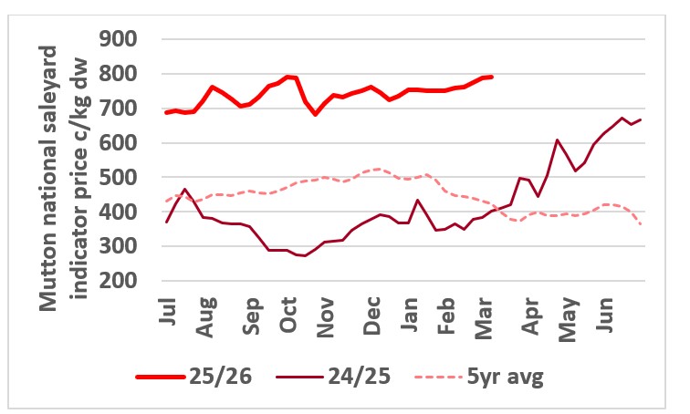 Owing to sharply lower mutton slaughter (-29 per cent) and lower production, prices paid by processors for mutton has soared in recent weeks as works seek to fill slaughter schedules.