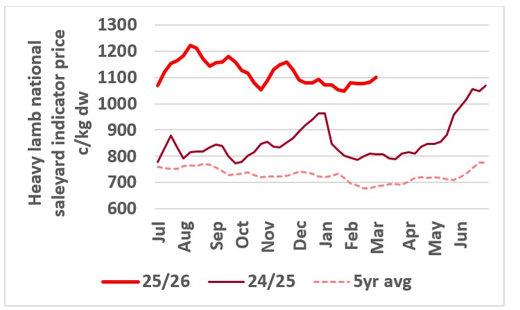 Heavy lamb markets are well supplied given the increased level of lamb feeding due to high meat protein values and relatively cheap barley.