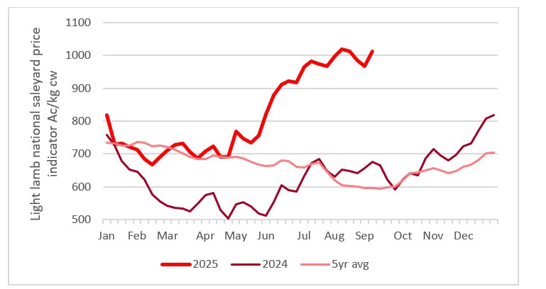 Despite weaker export volumes going into markets that traditionally demand light weight lambs (export volumes top Iran have fallen from 19,000 tonnes to around 5,000 tonnes for the year to August), prices for light lambs have held up well.