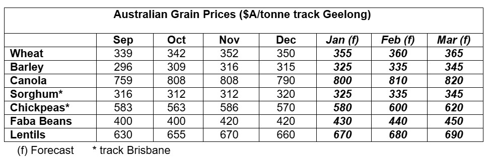 Domestic grain prices followed international prices lower for much of the year on the expectations of another solid local crop and increased domestic carryout stocks. Since the commencement of harvest price movements have been governed by the pace of grower selling.